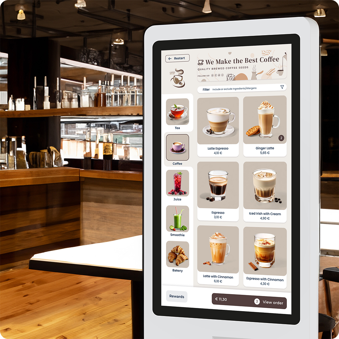 Verras klanten en verhoog de efficiëntie met onze Bestelzuilen voor zelf afrekenen en ons online bestelsysteem, waardoor uw service net zo snel en plezierig is als een perfect gezet kopje koffie